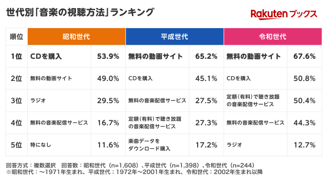・音楽の視聴方法は「昭和世代」では「CDを購入」が1位に。「令和世代」のCD購入理由は「アーティストを応援したいから」が最多